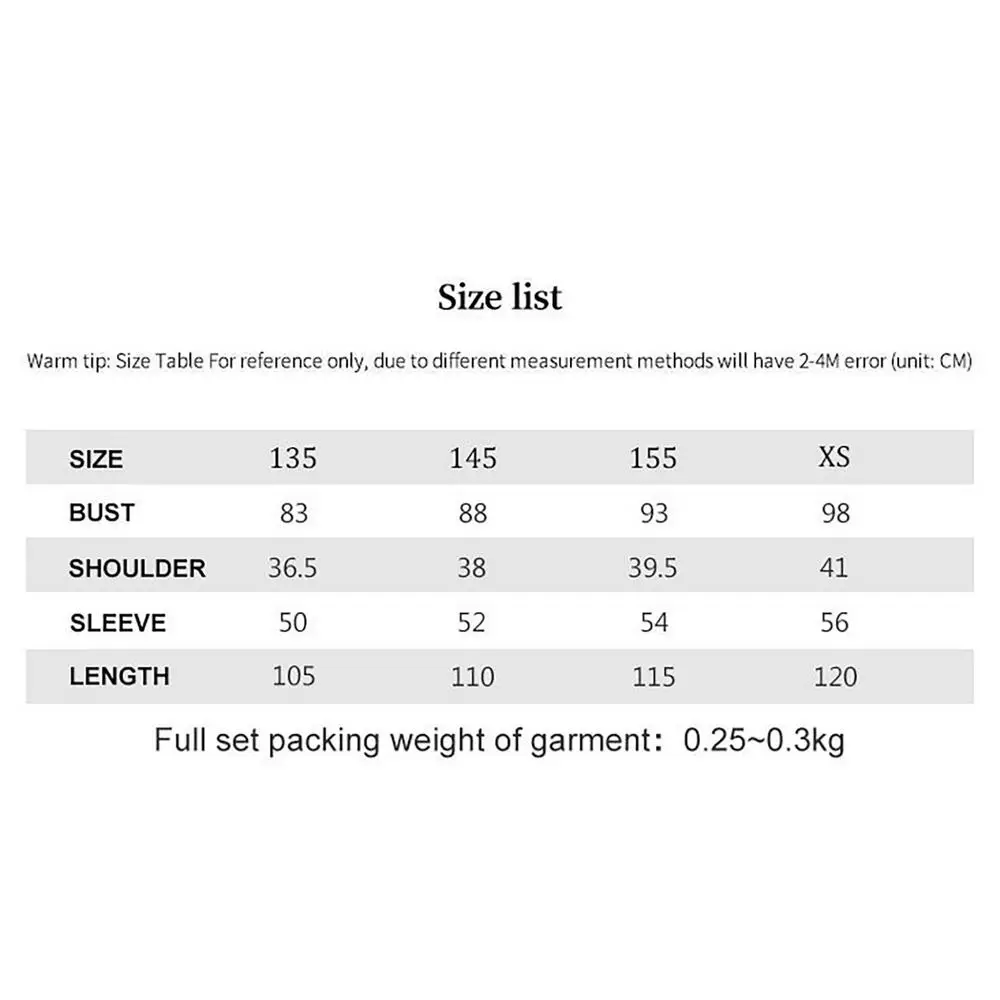 À Japan Geek, nous comprenons l’importance de trouver la taille parfaite pour vos achats, que ce soit pour un vêtement, un costume de cosplay, ou tout autre article nécessitant un choix de taille. Voici ce que vous devez savoir pour vous assurer que vos articles vous conviennent parfaitement. Une marge d’erreur de 1 à 3 cm sur chaque produit.